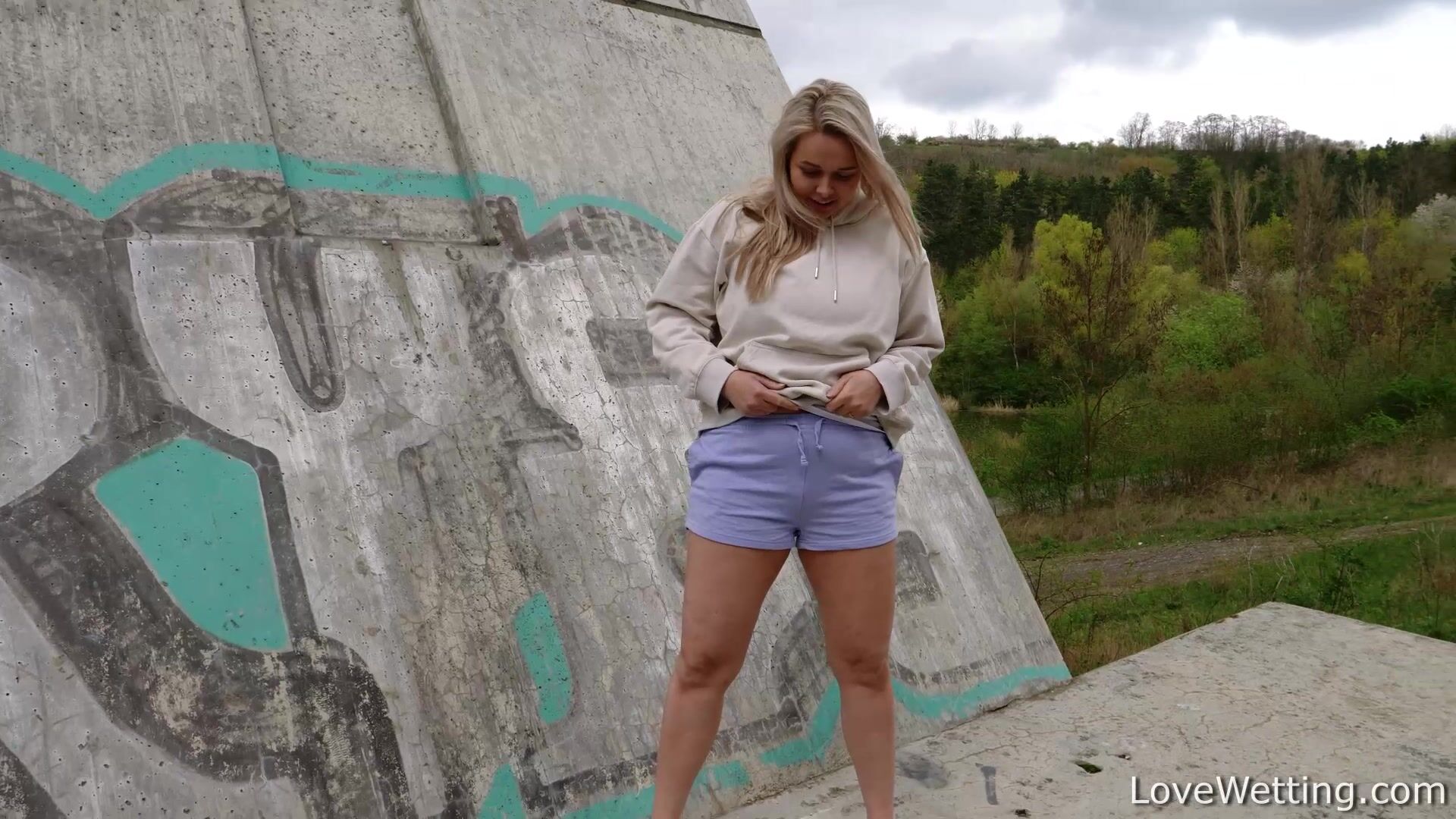 Another one of Nikki's wet shorts near another graffiti wall, lol. She's pretty chubby by the way, maybe someone will like that. :)