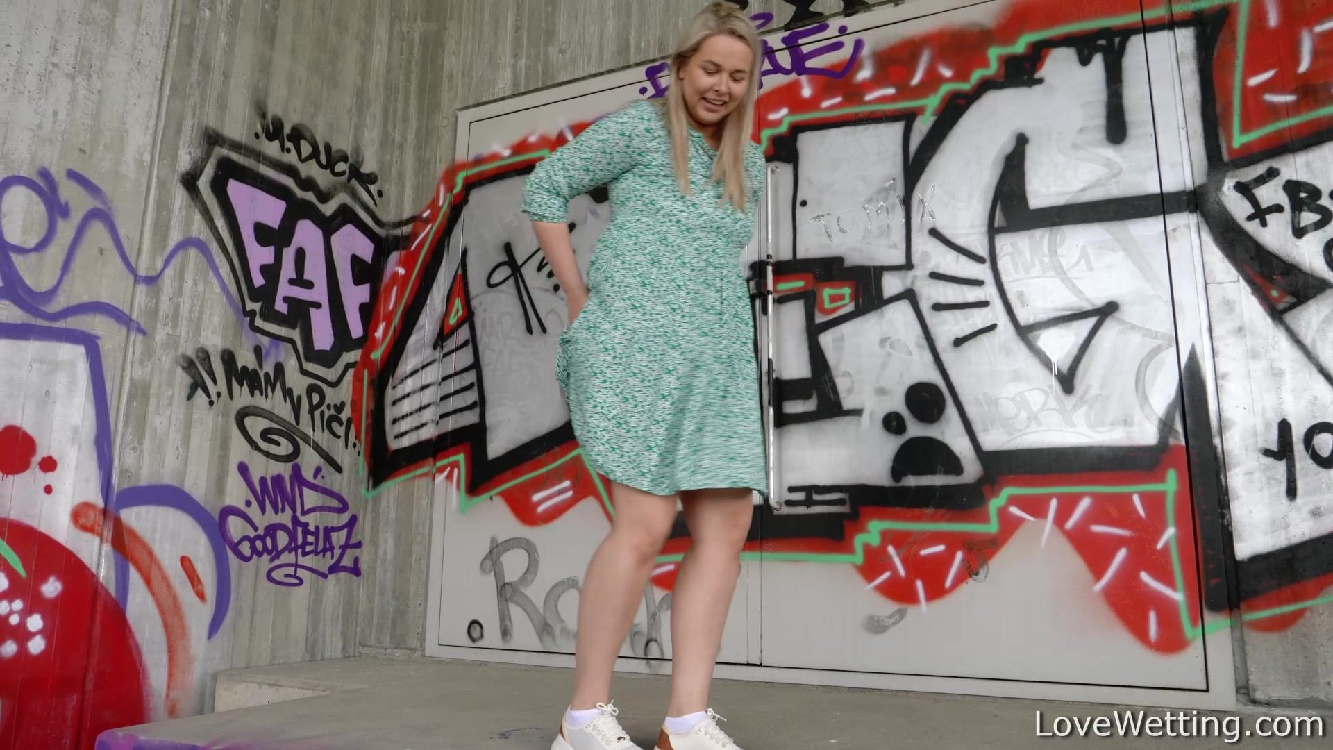 Nikki near that very popular graffiti wall gives off a pretty strong stream of piss. Eh, if only she were younger.....