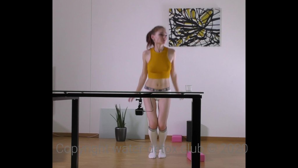 Long desperation video where Anita is on the verge very quickly and shows it :) She asks many times to relieve herself but is always denied. When she gets absolutely bursting she is allowed to let go a few drops in a tiny container, which makes her close to exploding. She needs long seconds to recover, using her fingers to help with the pressure. When finally the dam bursts, she still tries to contain it with her fingers to make it look like she is in control, but the pressure is too high and she sprays in all directions.Notice the hard work of her thighs and butt throughout the video thanks to the behind camera.