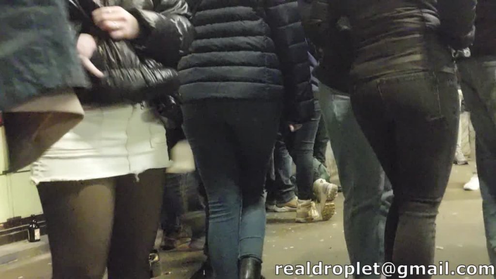 For most parts of the video, we get to see a red-haired woman (probably in her early thirties) in skin-tight jeans strugging at the back of a very long toilet queue. She is fidgety from the beginning and stays that way. From crossing her legs to bending over, lifting up her legs and crossing them, she is forced to perform the whole desperation package in order to keep that massive urine from flooding her jeans. In the next shot, we also see a hot young college girl waiting in line to make it into a concert venue. She probably drank quite a lot with her friends beforehand as it was Friday evening. Now she has to pee bad, but will have to wait until getting inside which means that we can enjoy the view of her while bending over with her tight little butt.