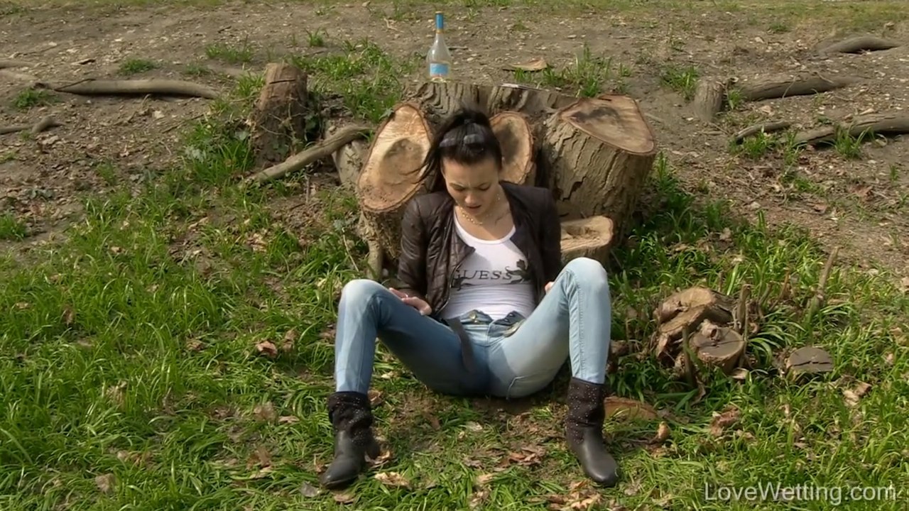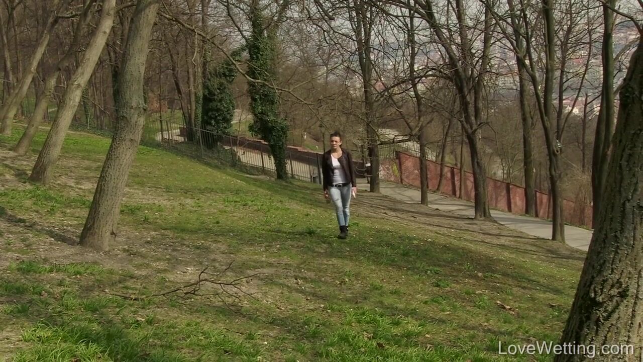 Vanessa's boyfriend has just broken up with her because he thinks she was cheating on him. Vanessa is trying to phone him and explain the situation but he doesn't answer the phone. Vanessa starts feeling hopeless and depressed so she buys a bottle of white wine - getting drunk should help her survive on this miserable day! She's walking in the Prague streets and a while later heads for a nearby park where she wants to relax. Suddenly she feels the increasing pressure in her bladder and decides to pee at a nearby tree. She's already squatting down when suddenly her phone starts ringing. She quickly puts her jeans back on and hurries back but she comes too late and the phone stops ringing. She literally collapses and pisses her jeans because her world is falling apart. This is undoubtedly one of the worst days of her life...