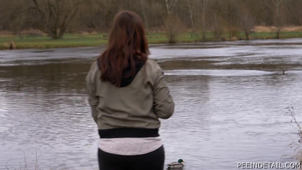 Klara is just walking on the river bank, feeding some ducks, tries to throw some stones (and fails in that).... and pees behind the bridge pillar for us!