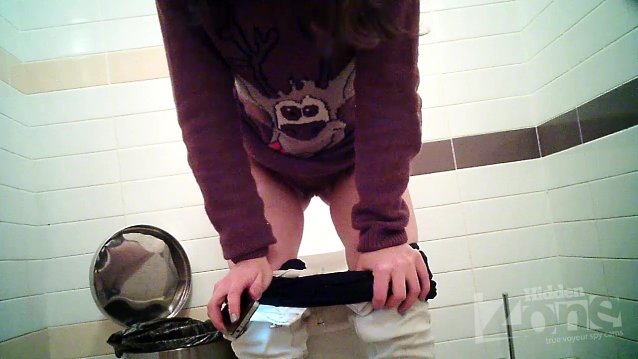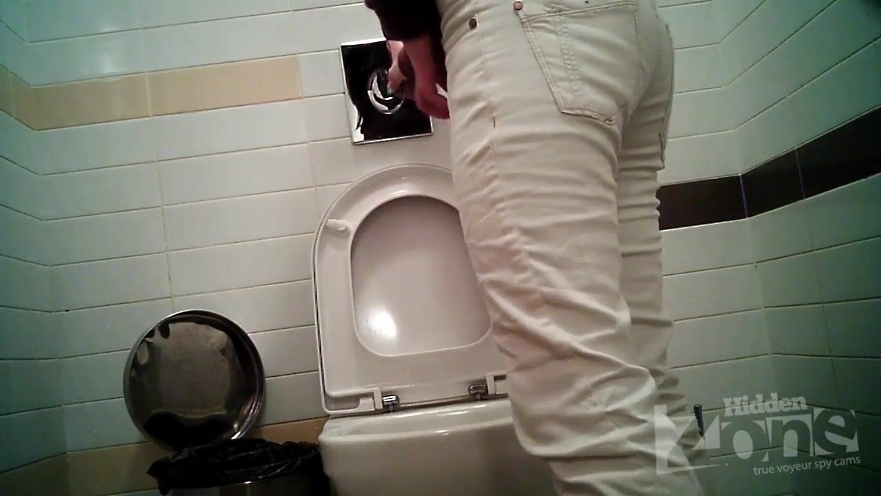 The brunette in black panties peeed standing up. View from two cameras. Good shots from the front camera. Shaved pussy with a beautiful hair close up.