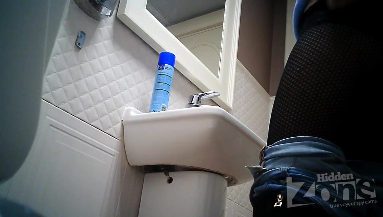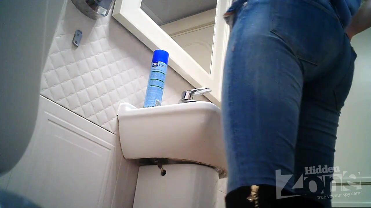 Hidden camera in the women's room. View from one camera. The girl in blue panties pissed standing. Our operator photographed on her hidden camera her round ass and shaved crotch.