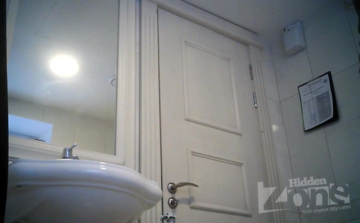 Hidden camera in the female restroom. Girl in gray shorts pee standing up. Our cameraman filmed her shaved crotch and anus on a hidden camera.