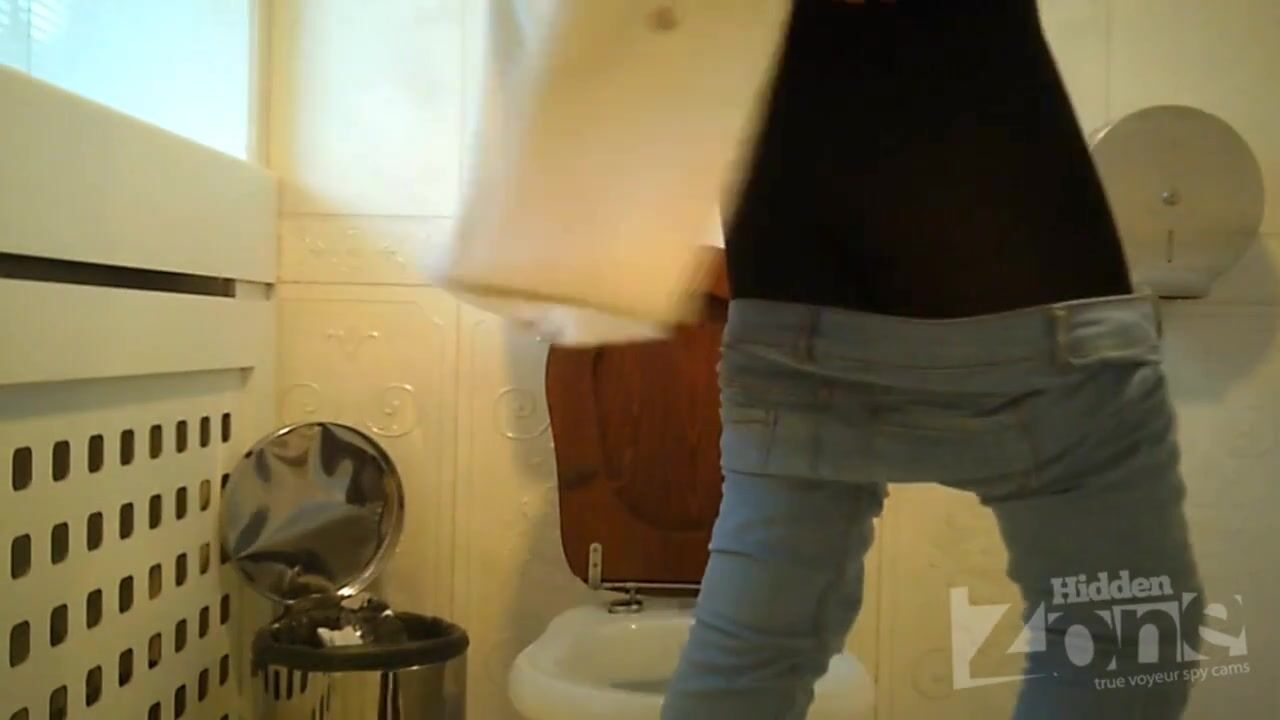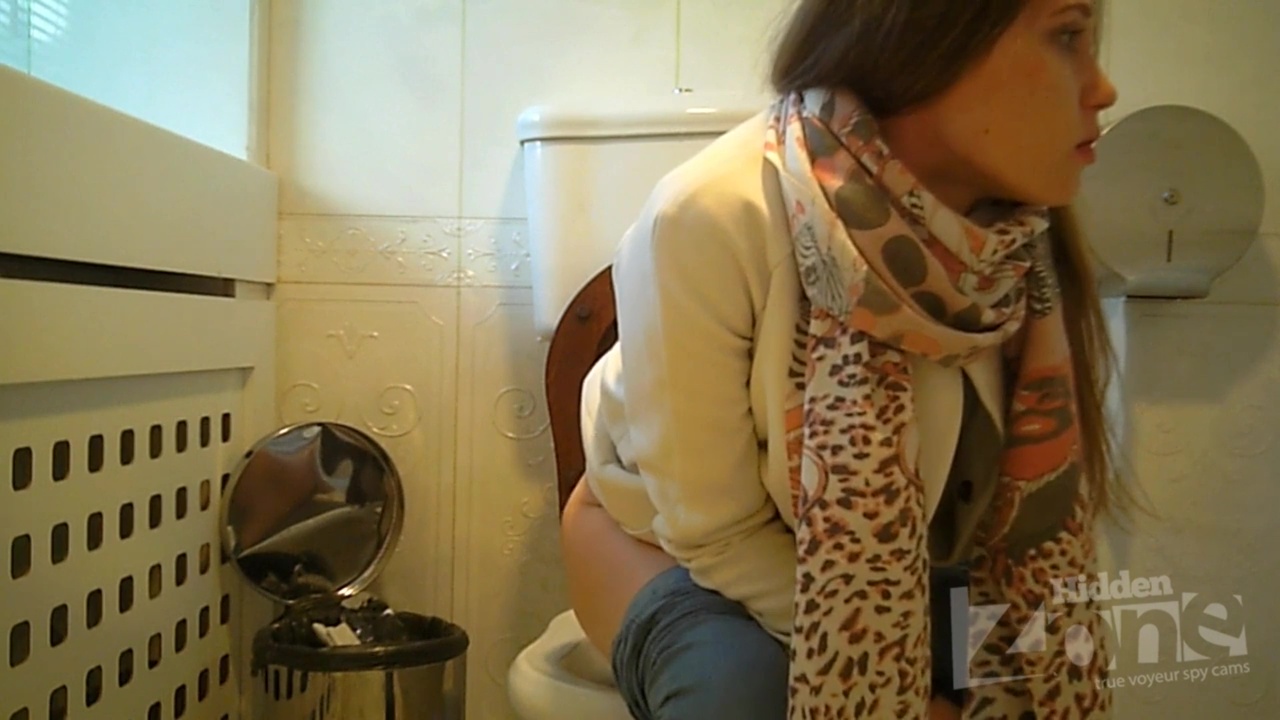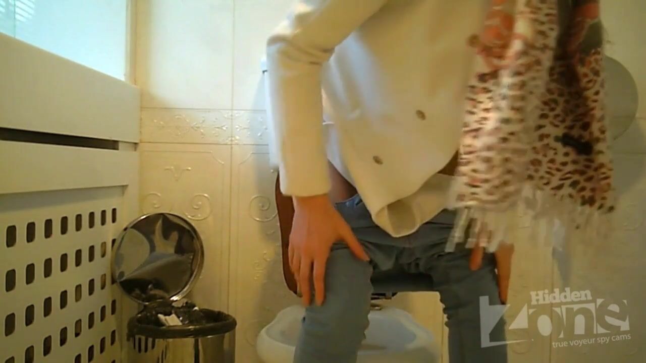 Hidden camera in the toilet cafe. Girl in white panties pee standing up. View from two cameras. Good footage from a front hidden camera. Hairy pussy close up.
