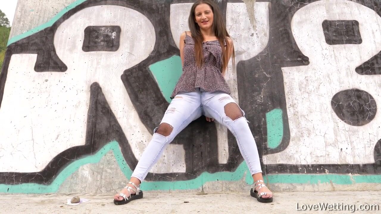 Contest with very simple rules. In each round Nicolette counts to 30, then relieves herself a bit through her jeans, then she stops peeing and another round follows. She did well until the fifth round in which she decided the money wasn't worth the torture and simply emptied the rest of her bladder without listening to the cameraman's orders.