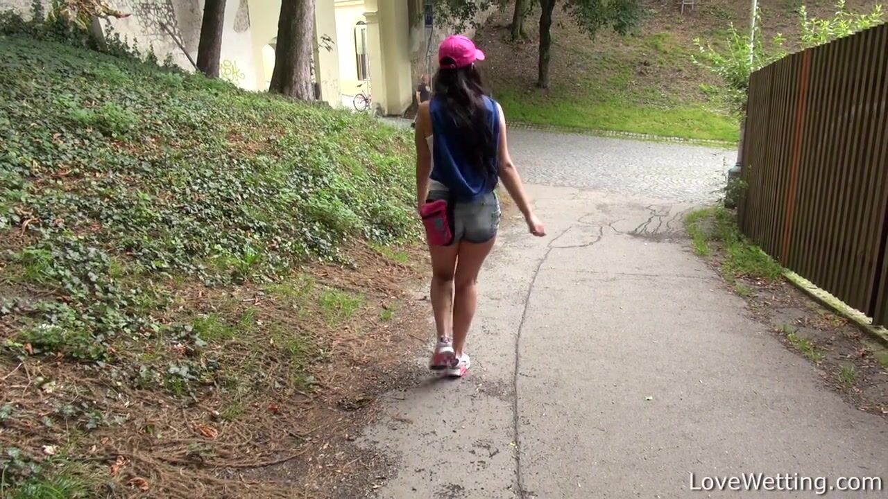 Thank god there are portable toilets in city centers. But... what if they are locked? Alice seems to be in a bad situation. She's not that shy and after a while she attempts to squat near a fence but somebody seems to be approaching and surprises her. She jumps up but a stream of urine is already running down her legs...