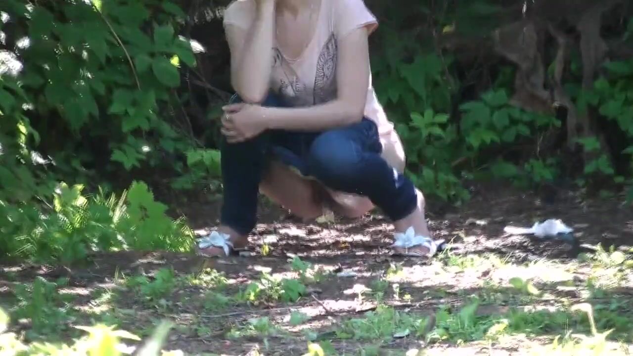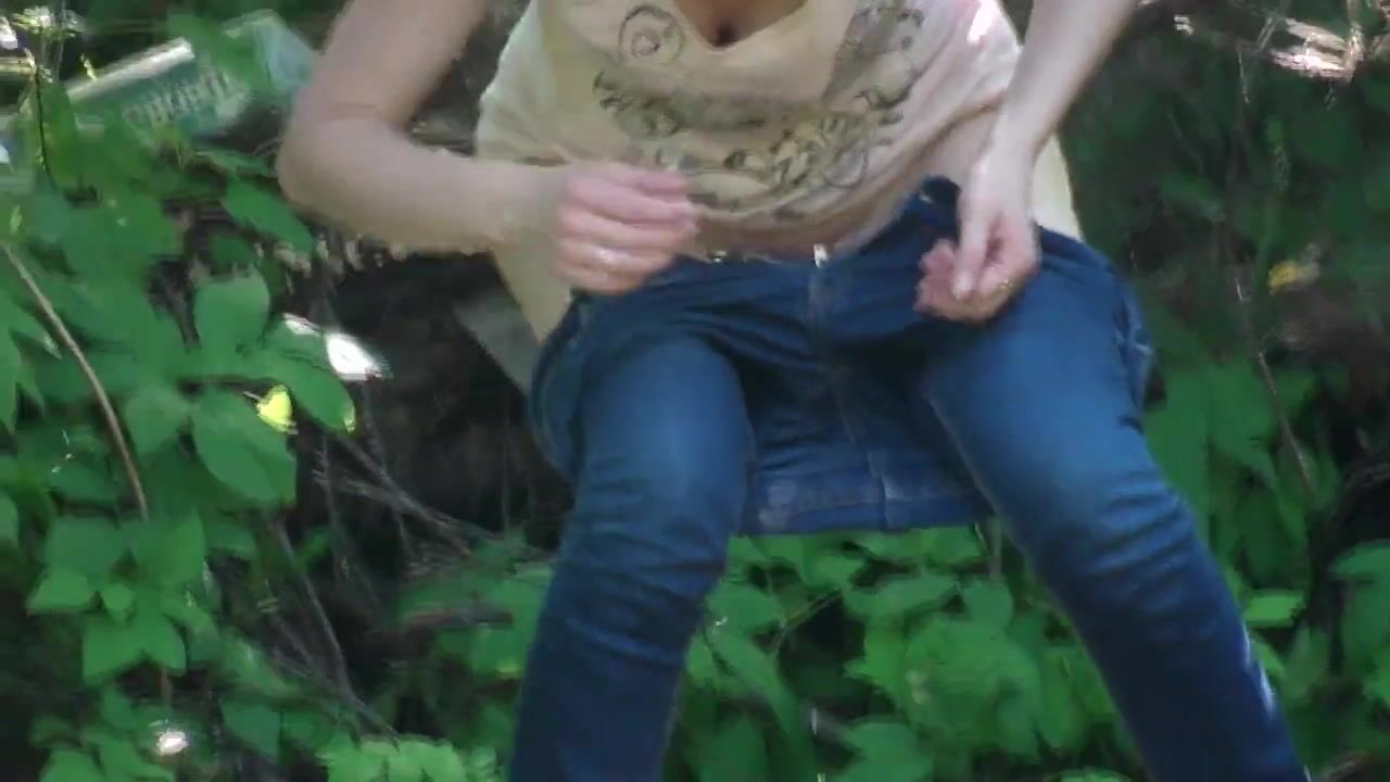 she has to pee very urgent so she went to the bushes near her boyfriend and she lets it run out... changing the position because of high pressure