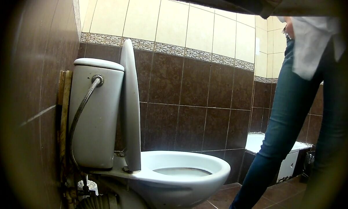 you see- she has to go urgent and so she went to the public toilet and pulls down her trousers and starts the show